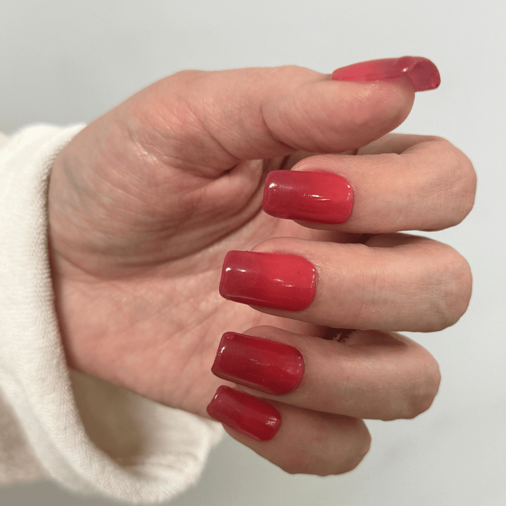Amaryllis is a red/pink cream that changes to a darker wine red in cooler temperatures!